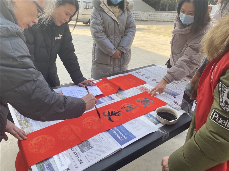 走進(jìn)社區(qū)送祝福。參與聯(lián)點共建昭亭社區(qū)“我們的節(jié)日·春節(jié)”新時代文明實踐志愿服務(wù)活動,以送春聯(lián)形式為社區(qū)居民送上新春祝福;顒蝇F(xiàn)場,志愿者們忙前忙后傳遞紙墨,書法家們在一張張紅紙上盡情地?fù)]毫潑墨,一個多小時的時間,書寫春聯(lián)等上百副。一副副春聯(lián)給社區(qū)居民們送上了新春的祝福,一張張福字更是讓大家感受到濃濃的傳統(tǒng)年味。