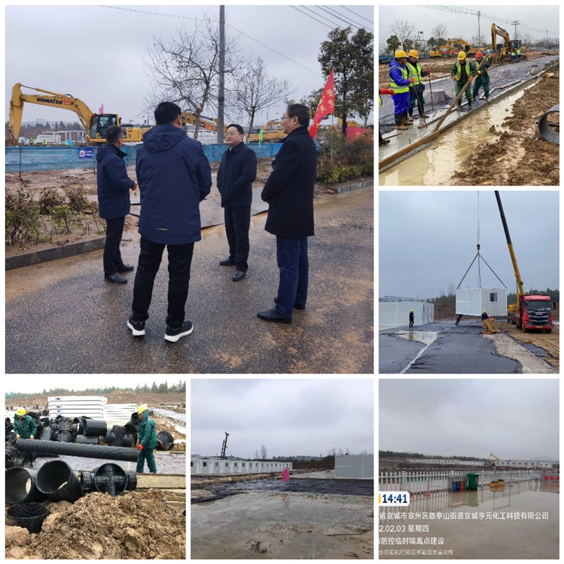 正月初三上午,區(qū)委副書記、區(qū)長俞志剛到宣州區(qū)疫情防控臨時隔離點工地現(xiàn)場督導(dǎo)項目建設(shè),副區(qū)長汪海洋陪同。俞志剛對項目建設(shè)速度給予充分肯定,向春節(jié)期間冒著雨雪天氣加班加點的項目建設(shè)者表示親切的慰問。上午,現(xiàn)場工人正在對路面沉降縫進(jìn)行切割、對積水較多區(qū)域進(jìn)行排水,為下一步吊裝工作做好準(zhǔn)備。截止目前,臨時隔離點北邊庫房、醫(yī)護(hù)辦公、醫(yī)護(hù)宿舍合計36套已吊裝結(jié)束,即將完成22套準(zhǔn)備區(qū)用房吊裝工作。