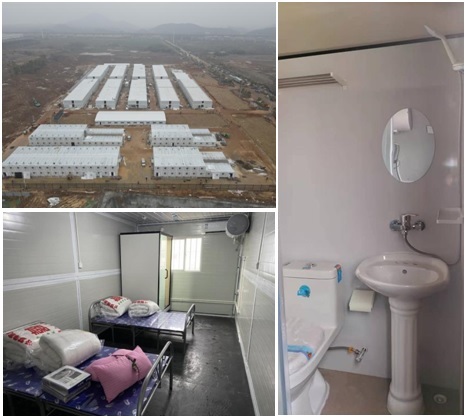 “越是艱難,越要咬緊牙關(guān)挺過去”,項(xiàng)目現(xiàn)場(chǎng)負(fù)責(zé)人說。在施工、采購(gòu)、調(diào)度各環(huán)節(jié),國(guó)資集團(tuán)不斷創(chuàng)新,會(huì)同各參建單位想盡一切辦法為項(xiàng)目建設(shè)提速,截至2月19日,準(zhǔn)備區(qū)折疊房、緩沖區(qū)活動(dòng)板房、隔離區(qū)打包房、污水處理點(diǎn)用房已安裝完成,室內(nèi)水電、家具、電器已完成90%,室外附屬工程已基本完成。已建成的折疊房和打包房,配備了空調(diào)、熱水器、淋浴房、馬桶、洗手臺(tái)、床、被單、棉被、枕頭、桌子、凳子等,必需的生活配套一應(yīng)俱全。