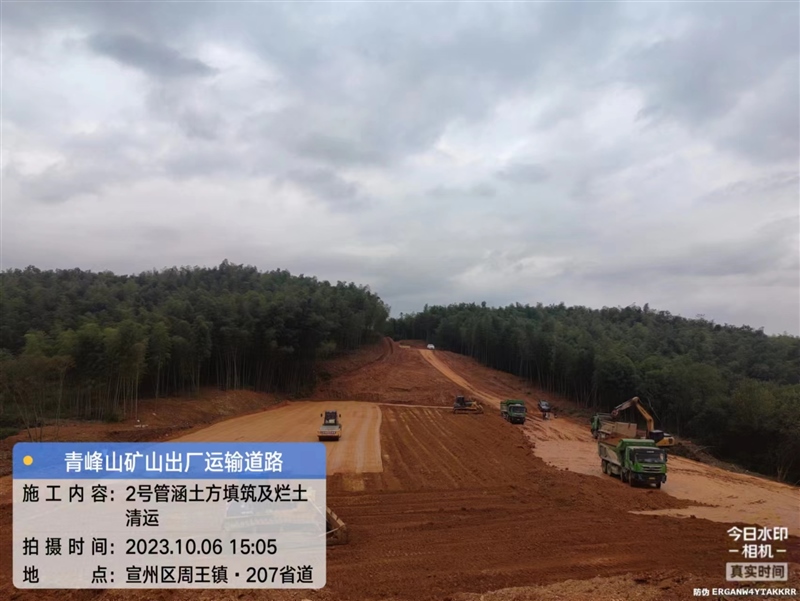 在青峰山礦山出廠運輸?shù)缆讽椖可希旰筇鞖鉃榱吮U享椖抠|(zhì)量,現(xiàn)場機械正在對爛土進行清運。