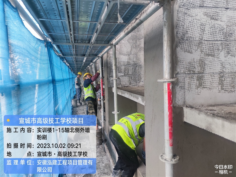 在高級技工學(xué)校項目上,為保證學(xué)校按時開學(xué)招生,施工隊伍正在進行墻面粉刷及墻面保溫施工。